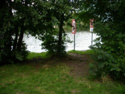Bruno-Bürgel-Weg recht flach in die Spree hinein und
