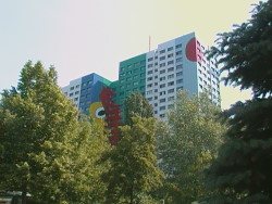 den Hochhäusern an der S-Bahn-Station Storckower Straße,