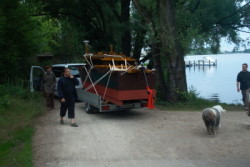 stellen, Anhänger darunter schieben, ab an den See und mit dem