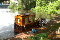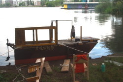 Rahmenungetüm mit den Solarzellen montierte. Der Kahn schwankte wie