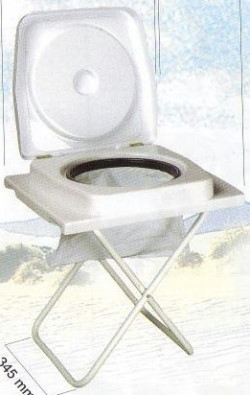 Eine Mischung aus Campingstuhl und Klobrille, man macht in einen