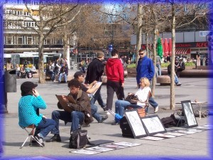 The stairs of the memorial church (in German „Gedächtniskirche“, Berliners call it „hollow tooth“ because there's nothing going on inside) used to be a major meeting point for revolutionary students in the sixties, hippies in the seventies and punks in the eighties. Now it‘s a major meeting point for everyone.