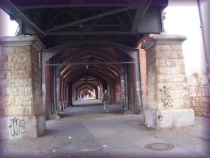 train to "Warschauer Straße". Between Schlesisches Tor and Warschauer Straße the
