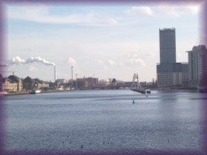 U-Bahn is crossing the river Spree at Oberbaumbrücke. Get out