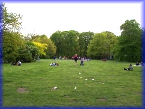 Treptower Park. In the park there's a nice little lake called Karpfenteich and the Soviet Memorial. If you want to