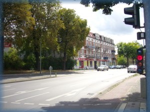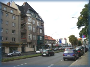 das Tempelhofer Heimatmuseum. Der Verkehr an der Kreuzung Mariendorfer