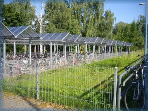 Der Bahnhof ist mit Fahrrädern zugeparkt, wohl weil alle