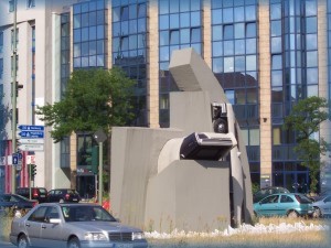 eine schöne Skulptur mit einem zubetoniertem Cadillac und