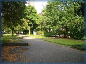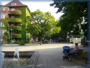 Mehr so eine Gegend zum Wohnen, ohne besondere Höhepunkte. Der Platz selbst ist ein kleiner Park mit Bänken und Springbrunnen. Aber relaxen kann man da nicht wirklich, die Autos auf dem Hohenzollerndamm machen jede Menge Krach.