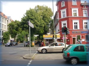 Die Kaiserin-Augusta-Straße zeigt mit ihren Bäumen,