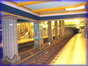 Ein schöner Bahnhof, aber im Freien gibt es nur eine Hauptverkehrsstraße und einige Wohnblocks.