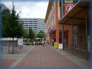 gibt es die Marzahn-Arkaden mit Springbrunnen, Kneipen und Markt, aber