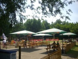 FKK-Gelände, einen Imbiss, eine Ballwiese, Tischtennis und einen