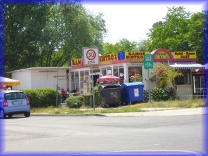 kleinen Einkaufszentrum. Das kleine U-Bahn Bistro zählt schon