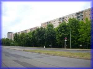 Hier gibt es nur Plattenbauten und einen Supermarkt. Das einzig Bunte in der Landschaft ist der Cabuwazi-Kinderzirkus.
