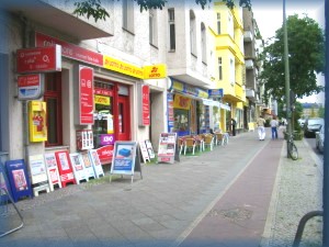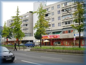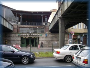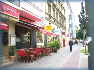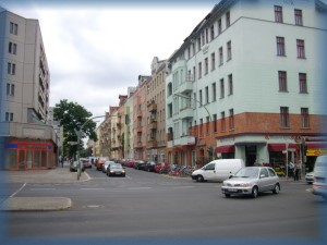 die vielbefahrene Dominicusstraße, einige Kneipen und viele