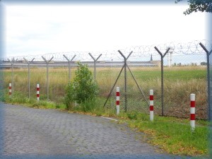 kann zwar bis zum Sicherheitszaun des Flughafens gehen, sieht von da